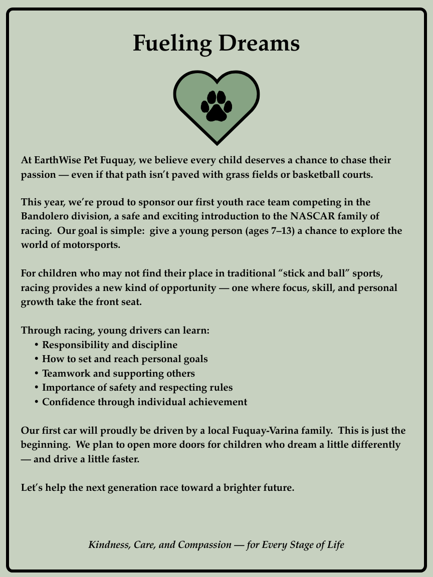 Fueling Dreams — Encouragement and opportunity for young racers chasing their passions.