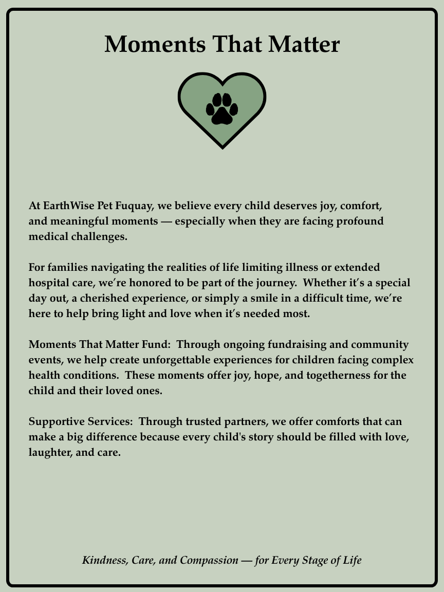 At EarthWise Pet Fuquay, we believe compassion doesn’t stop at the leash. Every day, we see how pets bring love, comfort, and connection to people’s lives — especially during their most meaningful moments.